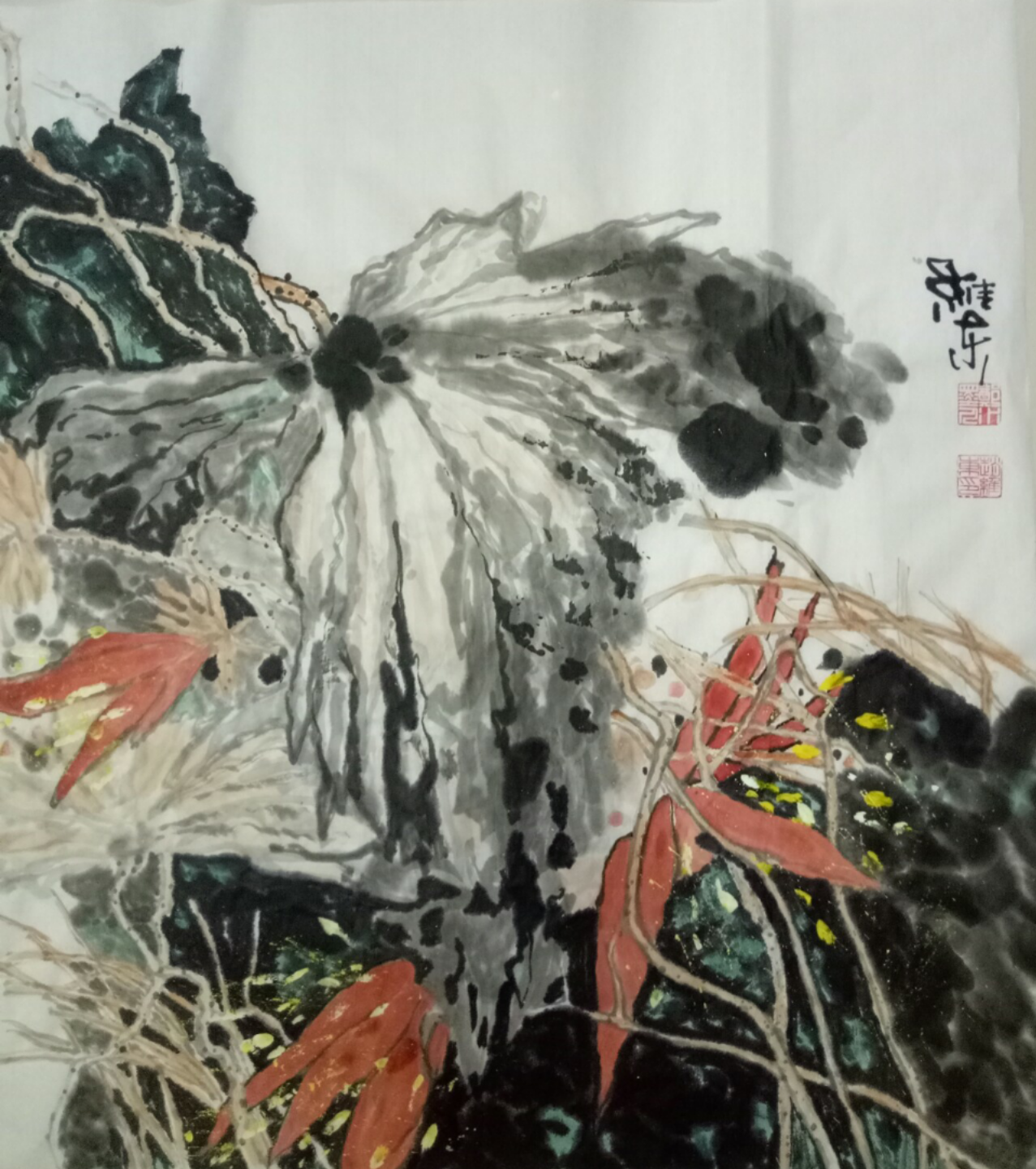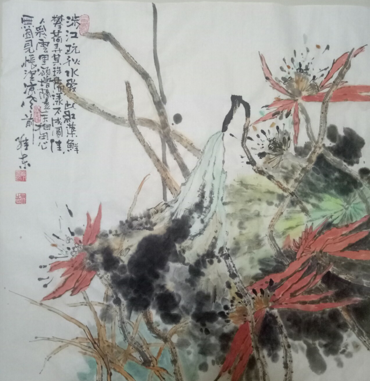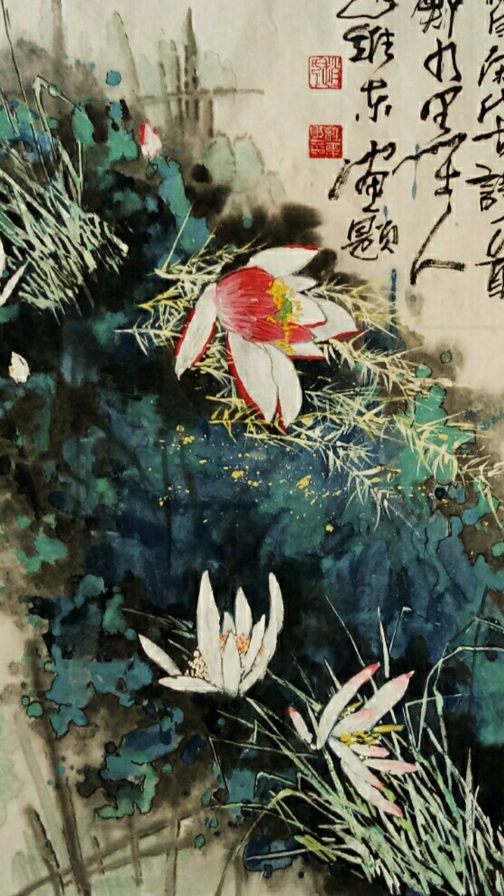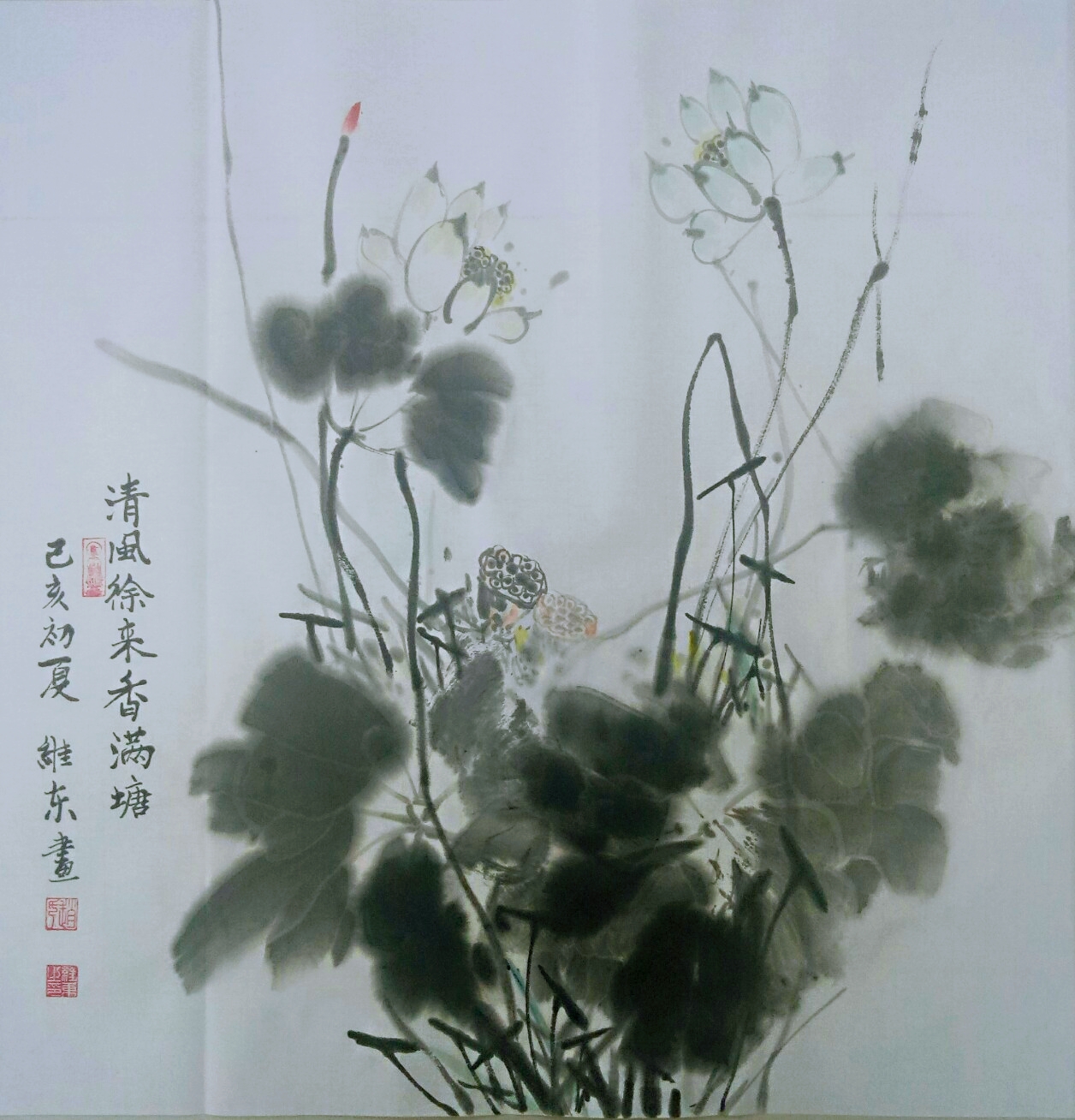 中国画〔荷塘清暑〕被国际经济组织友人个人收藏。
