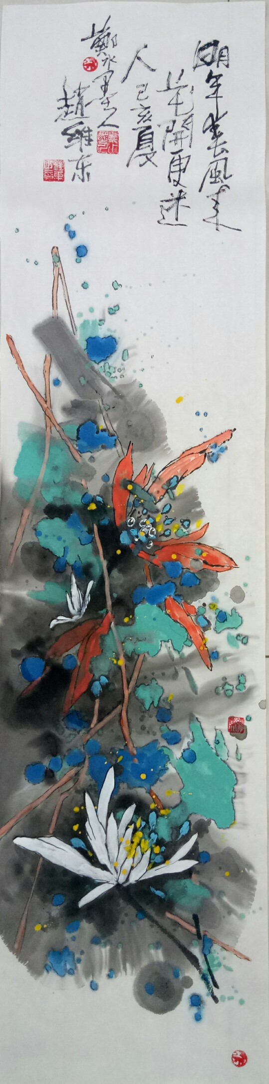 赵维东,山东淄博人,字:修阳,号 : 郑水墨人、丹青郑溪人。1958年生,高中文化,曾从事电影放映二十载,画过电影海报,但书画艺术之缘一直在我心中,我从小启蒙于初中语文教师张正乾老师(现国家一级书法师)的引导,自幼酷爱书画,自学钻研。是他一步步把我带进了书画殿堂,多年勤于墨海游舟,尺幅纵马,虽无大成,亦有小益。本人曾在淄博市电影公司、区电影公司及张店文化局参加过市区的一些书画活动,作品曾在1980年张店区农民画展获得一等奖,在1981年电影公司举办幻灯汇演中获得一等奖。2018年初赴石家庄硬笔书法进修学习。拜师于国家美术写意大师齐辛民先生(中美协会员、中央美术学院客座教授、清华大学中国画高研班导师、国家一级美术师)。2019年赴北京清华大学中国画高研班齐辛民工作室进修学习深造,擅長水墨写意中国花鸟画。