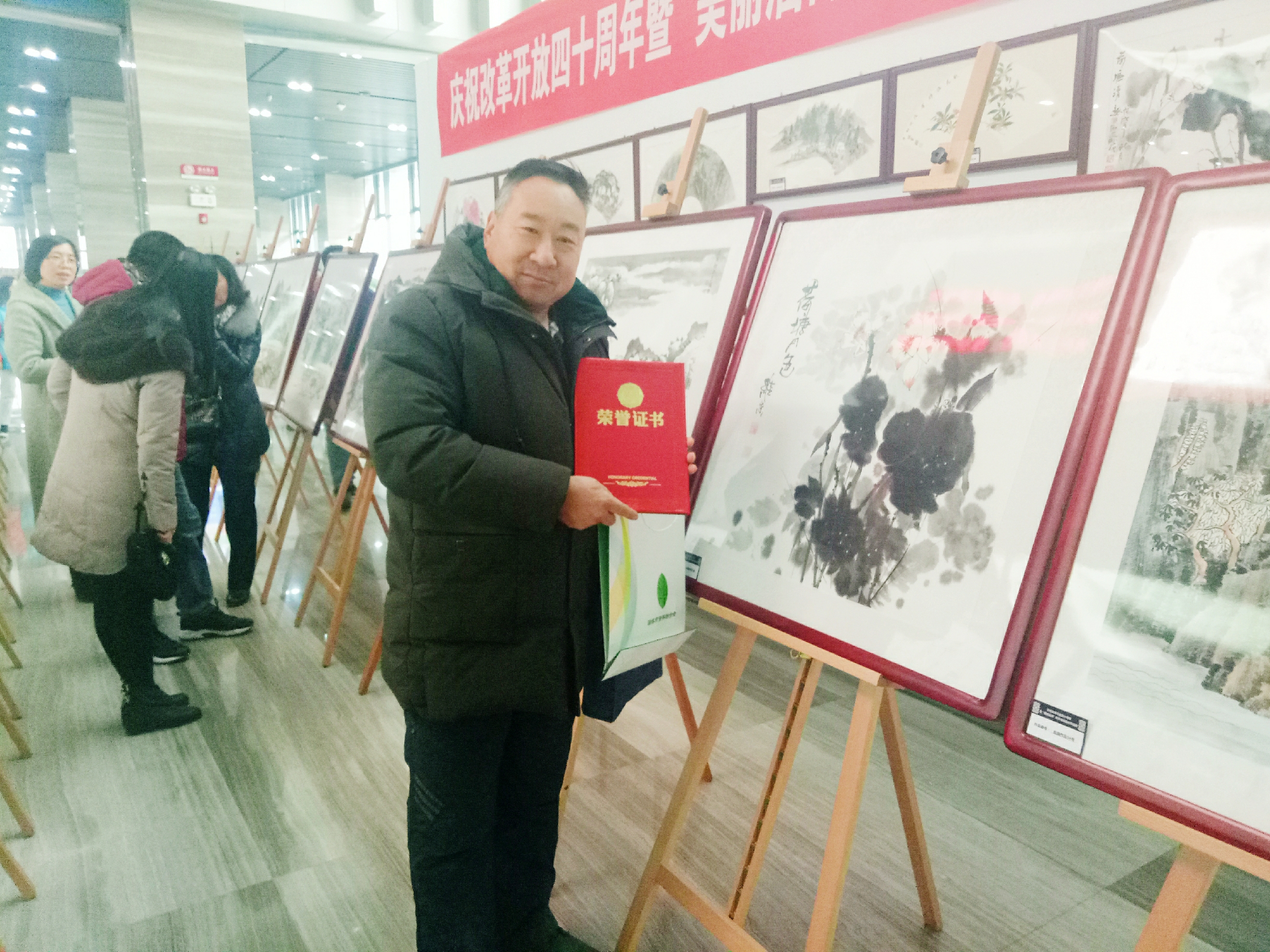 2018年庆祝改革开放40周年〔美丽淄博〕作品(荷塘月色)获优秀艺术奖证书。